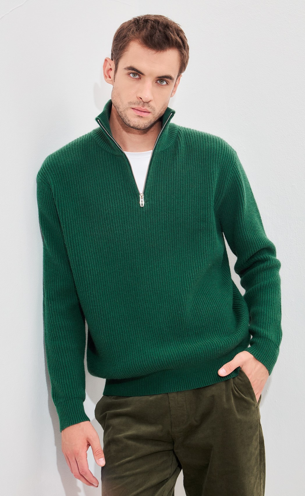 Be the first to review “Half-Zip Ribbed high-neck sweate ( Bottle Green)”