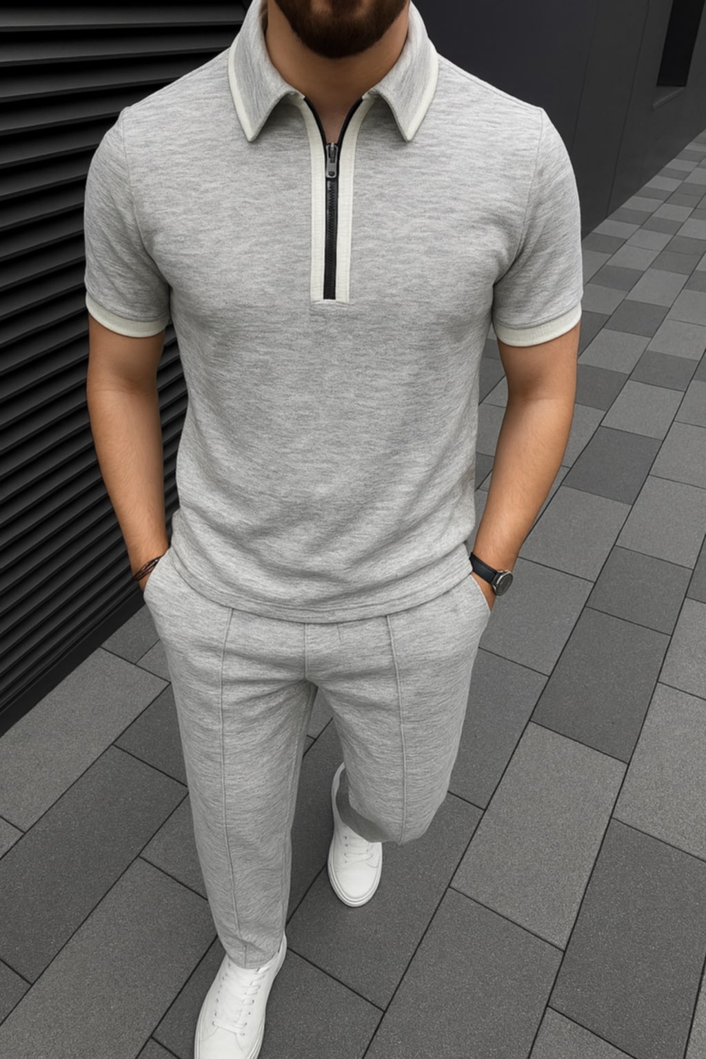 Premium zipper polo combo set(Silver Mist)